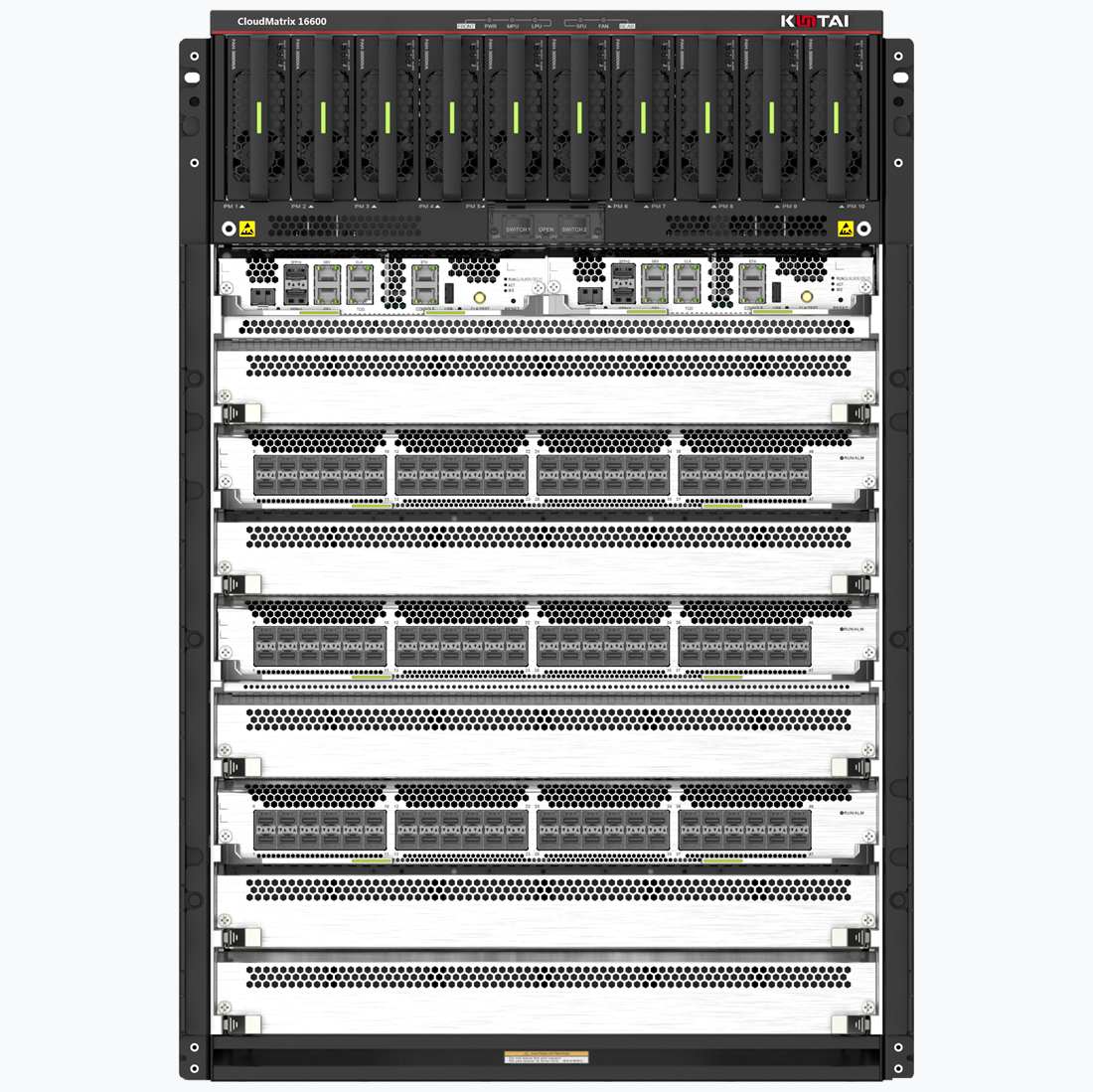CloudMatrix 16600系列数据中心交换机包含CloudMatrix 16604(简称CM16604)和CloudMatrix 16608(简称CM16608)两款款产品形态。