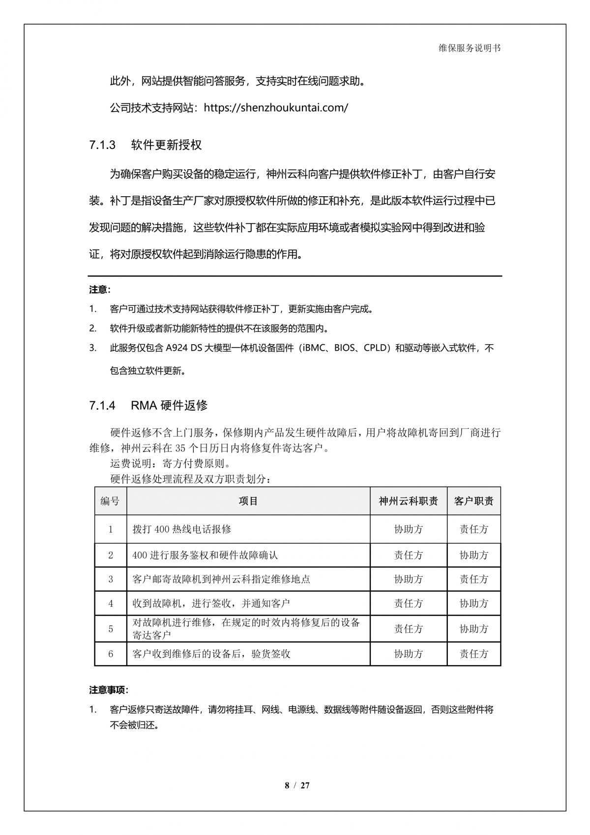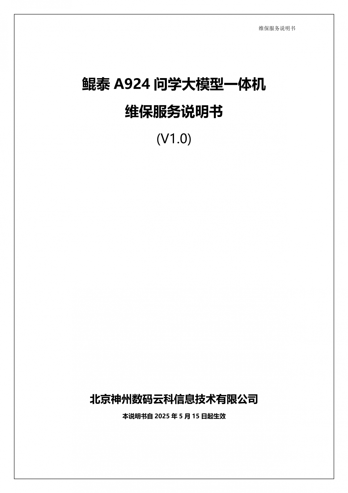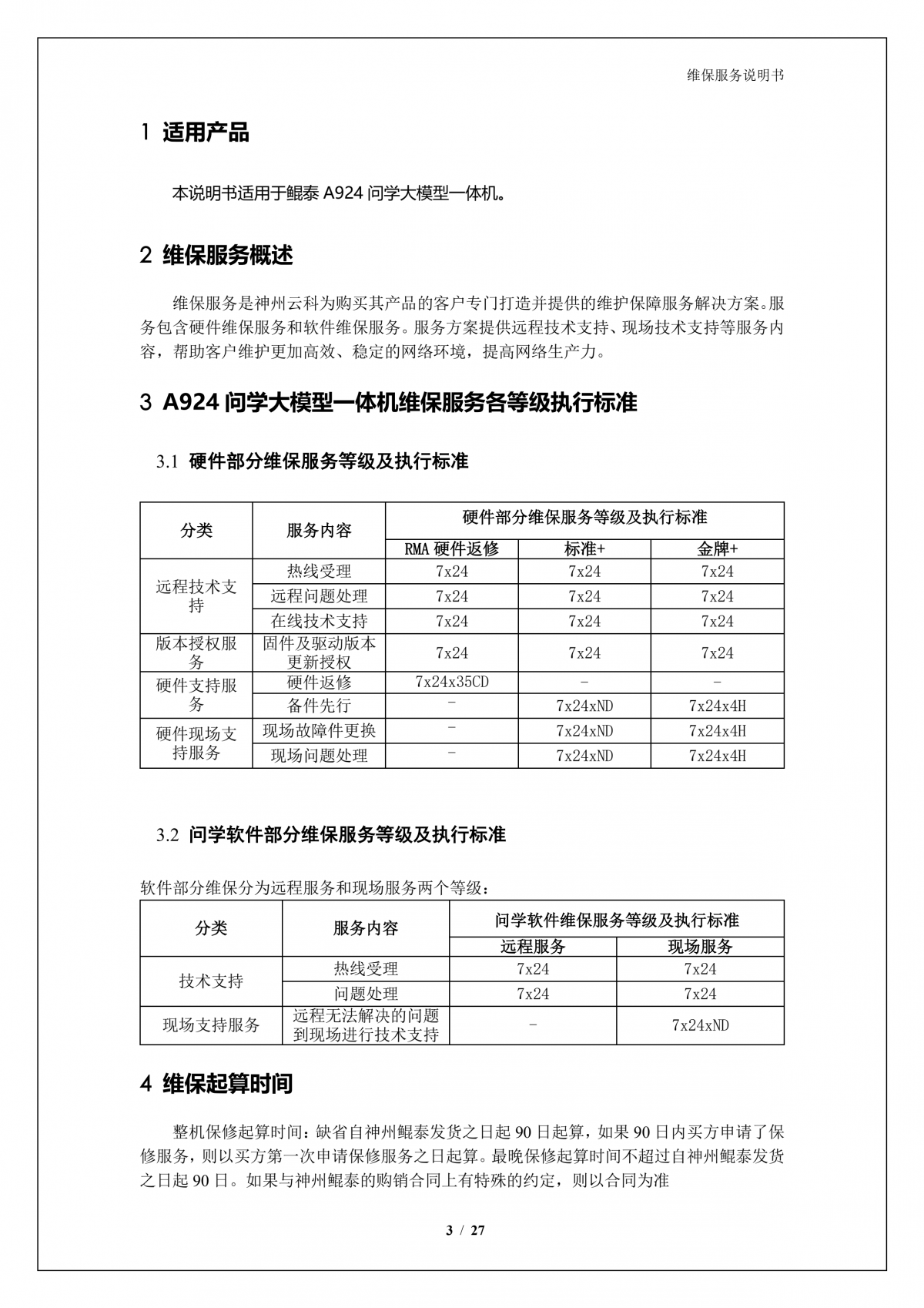 森林舞会官网A924 问学大模型一体机维保服务说明书_V1.0